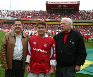 Das esq. para dir.: 2º vice-presidente do Inter, Mário Ségio Martins, João Derly e o 1º vice-presidente Arthur Dallegrave