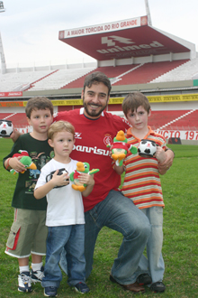 O ator Alexandre Borges esteve visitando o estádio Beira-Rio na tarde desta quinta-feira. "A minha esposa é colorada e aproveitei que estamos em Porto Alegre para trazer as crianças para conhecer o Beira-Rio," destaca Borges. O filho Miguel e os sobrinhos Arthur e Leonardo correram e brincaram no gramado principal. Borges é casado com a atriz gaúcha Júlia Lemmertz.