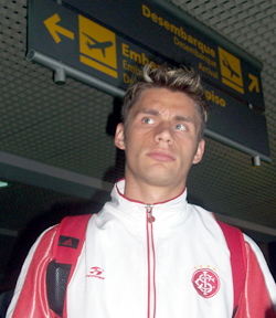 Rafael Sobis desembarca no aeroporto Salgado Filho: Inter concentrado na Copa Sul-Americana