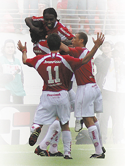 Um quarteto de jogadores vem sendo decisivo no momento de marcar os gols do Inter na temporada. Juntos, Fernandão, Rafael Sobis, Jorge Wagner e Tinga fizeram 65 dos 95 gols do time colorado em 2005. E mais: em 37 dos 47 jogos nos quais o time de Muricy Ramalho balançou a rede, um dos quatro jogadores compareceu no placar. Fernandão. Mas eles não só fazem os gols. São também responsáveis por grande parte das assistências (os passes que resultam em gols) do Inter. Além dos 17 gols marcados, Jorge Wagner, por exemplo, já colocou companheiros na cara do gol em 10 oportunidades.
