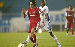 Fernandão briga pela bola com Somália: Inter empatou no Anacleto Campanella
