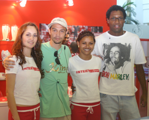 Chiquinho (E) e Wilson com as atendentes da loja do Praia de Belas