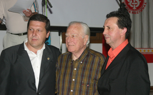 Vice-cônsul do Inter em Bento Gonçalves Geraldo Scotton (E), Arthur Dallegrave (C) e Valdir Locatelli (D)