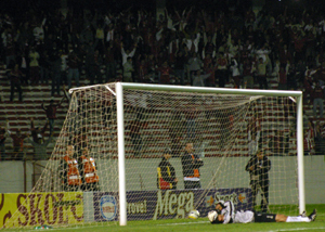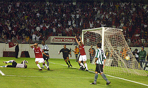 e a bola vence o goleiro Douglas