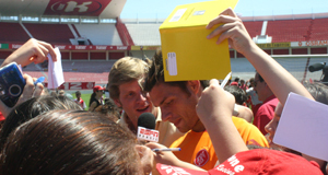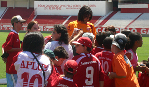 Aproximadamente mil crianças vieram ao Beira-Rio na manhã deste sábado acompanhar o último treino do Inter antes da decisiva partida contra o Palmeiras. Os pequenos colorados tiveram a oportunidade de entrar no gramado do Gigante ao final do treino e cumprimentar seus ídolos. A iniciativa do clube colorado fez parte da Campanha do Brinquedo 2005 que é coordenada pela Primeira-Dama do Estado Cláudia Rigotto. Os acompanhantes das crianças tinham que doar um brinquedo que será repassado para entidades assistenciais. Além de trazer alegria às crianças, que puderam ver seus ídolos de perto, e energia positiva aos jogadores antes da importante partida, a ação também proporcionará um Natal mais feliz para diversos menores carentes. Veja as fotos: