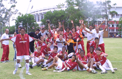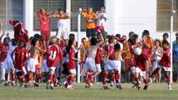 Jogadores do time infantil comemoram a goleada sobre o Grêmio e o título gaúcho