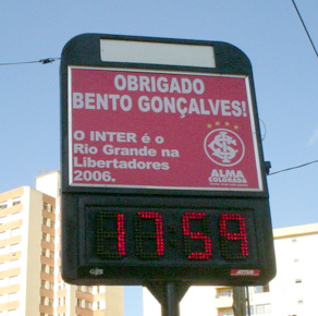 Mensagem em relógio digital agradece a comunidade de Bento Gonçalves