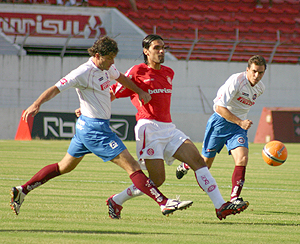 Aos 2min25seg, Fernandão deu bom passe para Rubens Cardoso que avançou pela esquerda e cruzou para Ricardo defender. Aos 6min30seg, Mossoró cruzou da direita e Tinga cabeceou por cima, na primeira grande chance colorada. Aos 12min50seg, Tinga cruzou e Fernandão cabeceou para defesa de Ricardo.