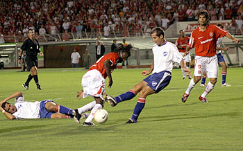 Foi uma partida praticamente perfeita do Inter. Os jogadores entraram em campo com muita disposição, disputando cada lance com vigor, sem dar chance ao adversário. O setor defensivo esteve impecável com as atuações seguras de Bolívar e Fabiano Eller. Pelas alas, Ceará e Rubens Cardoso deram trabalho aos marcadores. No meio-campo, Tinga, Perdigão e Fabinho criaram diversas oportunidades de gols ao longo da partida. Na frente, Fernandão, Michel e Iarley apresentaram muita movimentação e levaram perigo à área do Nacional durante os 90 minutos.