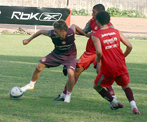 Rafael Sobis (E) participou normalmente do treino coletivo desta quinta-feira