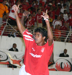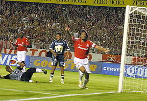 Adriano marcou o gol da virada: Inter encaminhou vaga às oitavas-de-final da Libertadores (foto: Daniel Boucinha)