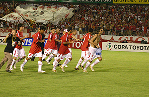 ?Foi importante a determinação de todos. Foi uma virada a la Internacional. Foi uma virada a la brasileira. Brasileiro também tem garra e força para virar jogos?, afirmou Fernandão, na saída de campo, respondendo uma pergunta se foi uma vitória ?a la argentina?.