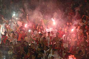 Bandeira gigante foi desfraldada na arquibancada no começo do jogo