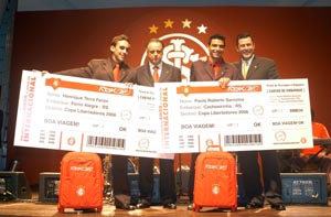 Os dois torcedores receberam os prêmios durante a festa de gala de 97 anos do Internacional, nesta quinta-feira, na capital gaúcha. Como prêmio, Barcelos e Terra vão viajar na comitiva do Internacional em jogo da Libertadores. Els ganharam ainda uma coleção completa do uniforme do Colorado produzido pela Reebok.