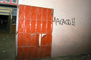 Portões quebrados e pixações no ginásio Gigantinho