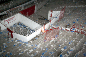 Grades foram derrubadas nas arquibancadas