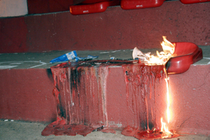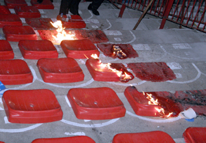 Assentos foram queimados