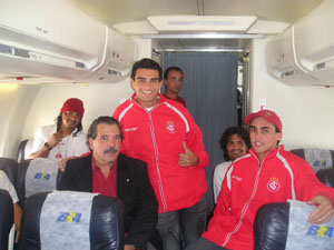 Henrique Terra e Paulo Barcelos, ganhadores da promoção Uma declaração de amor à camisa do Inter, acompanharam o time na viagem ao exterior; eles ganharam uniformes completos do Colorado produzidos pela Reebok.