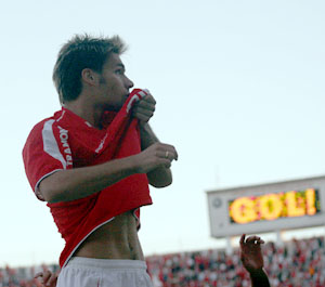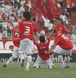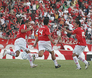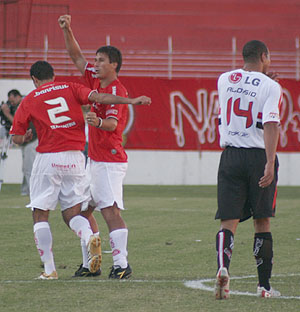 Explosão de alegria: Índio (camisa 4) comemora o seu segundo gol na partida