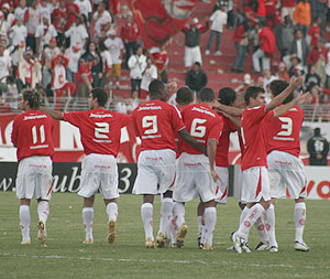 Internacional (3): Marcelo Boeck; Índio, Bolívar e Fabiano Eller; Granja (Ceará), Edinho, Fabinho, Alex (Chiquinho) e Jorge Wagner; Rafael Sobis (Wellington Monteiro) e Rentería. Técnico: Abel Braga.