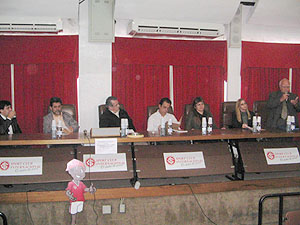 Na mesa de autoridades presentes no Seminário (da esq. para dir.): Alfeu Farias, Luiz Antônio Lopes, Cesardo Vignochi, Paulo Pimentel, Maria do Carmo Souza, Marines Bonacina e José Moreira da Silva