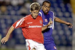 Aos 15min55seg, Anderson Lima avançou pela meia-direita, passou por Alex e chutou forte de pé esquerdo, marcando um bonito gol. São Caetano 1 a 0. O Inter sentiu um pouco o gol e o time paulista quase ampliou quando Marabá entrou livre pelo meio e bateu da entrada da área para fora.