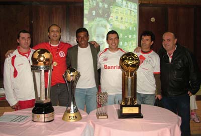 Valdomiro e a comitiva colorada com o Dir. de Comunicação, Luis Carlos Hauber, e seus auxiliares, conheceram uma casa onde tudo é INTER. Geladeira, cama, cuia, bomba, quadros, bandeiras e tantas outras lembranças que ganhou de amigos e familiares.