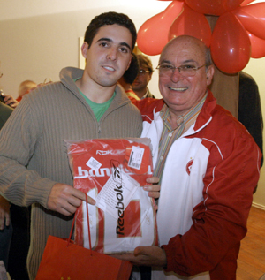 Torcedor ganha de Gelson Pires (D) camisa 10 sorteada no evento