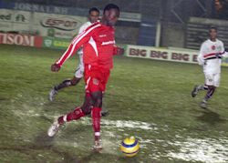 Nigeriano Abu tenta conduzir a bola: chuva prejudicou o gramado