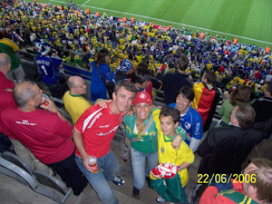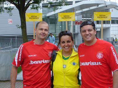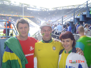 Da esq. para idr.: Renato, Margaret e Rodrigo Pellegrini em Dortmund (Brasil x Japão)