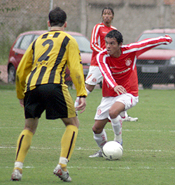 Meia Ramon (com a bola) marcou um dos gols do Inter B na vitória de 3 a 2 sobre o Bagé