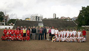 O Projeto Genoma Colorado celebrou na tarde desta quarta-feira (28/6) os 56 anos da realização do primeiro jogo de uma Copa do Mundo em Porto Alegre, no Estádio dos Eucaliptos. O estádio foi palco de dois jogos da primeira fase da Copa de 1950: México x Iugoslávia (atual Sérvia) e México x Suíça.