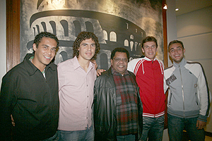 Cônsul Ivo Sandri (E) vibra com a presença do zagueiro Bolívar