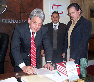Argos Juarez Temes (E) assina contrato de convênio com o Inter
