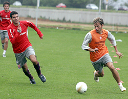 Alex (com a bola) e Fernandão devem iniciar a partida no Paraguai