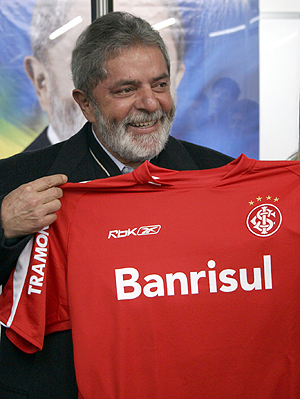 O presidente Lula foi presenteado com uma camisa oficial do Inter após um evento político realizado neste sábado (29/7), no Ginásio Gigantinho, em Porto Alegre. O nome do presidente e o número 13 foram inscritos às costas do uniforme. A entrega foi feita pelo departamento de marketing do clube.