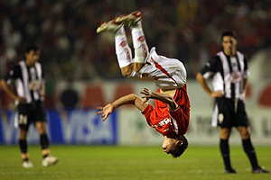 Alex comemorou o gol com um salto mortal (foto: Jefferson Bernardes)