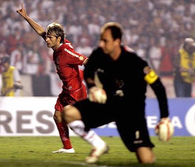 Com a vantagem de 2 a 0, o volante Perdigão, que ficou atrás do gol de Rogério Ceni na etapa final e de frente para a torcida colorada, dava uma de maestro e regia a massa vermelha. ?Eu tive aqui, galera! Eu vivi isso?, gritava um torcedor, enaltecendo o feito que pode ser histórico.