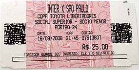 O Sport Club Internacional alerta aos torcedores para a existência de ingressos falsificados para a partida contra o São Paulo. O clube já tem conhecimento do uso deste artifício por parte de cambistas e pede aos torcedores que evitem comprar ingressos deles. É muito grande a chance de que você esteja adquirindo um bilhete falso ao comprar ingresso dos cambistas. Por isso, evite!