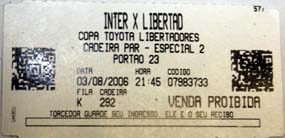 Ingresso falso tem o mesmo layout do bilhete da partida Inter x Libertad, pelas semifinais da Libertadores