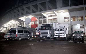 Caminhões da televisão já estão instalados no pátio do Beira-Rio