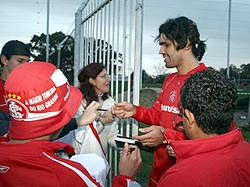 Cada um do seu jeito, mas todos jogadores manifestaram a alegria pela conquista do título histórico. Assim foi a retomada do Inter aos treinos depois da grande final da Libertadores - na última quarta-feira, contra o São Paulo. Depois do trabalho com bola no campo suplementar que começou a encaminhar o time que enfrentará o Palmeiras, os heróis da conquista foram muito assediados pelos torcedores que aguardavam ansiosos no pátio do estádio.