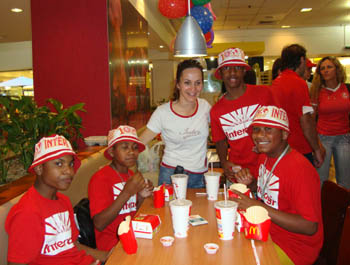 Como já é tradicional, o Internacional participou do McDia Feliz, que foi realizado no último sábado (29/8). O goleador Alecsandro esteve com crianças do Projeto Interagir no Mc Donald's do shopping Iguatemi e interagiu com as mesmas e com o público presente. O jogador atendeu no balcão dando autógrafos para quem comprasse o sanduíche e doou camisetas para serem rifadas em prol das crianças com câncer. Voluntários do Interagir também estiveram presentes.