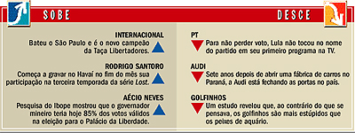 A conquista da Libertadores da América pelo Internacional ganhou destaque na edição desta semana (23/8) da revista Veja, no quadro 'Sobe' e 'Desce' (reprodução abaixo), que analisa os aspectos positivos e negativos da semana na vida política, social e cultural do país. O título também foi destacado na seção 'Data' (página 86) com a foto capitão Fernandão erguendo a taça da maior competição do futebol sul-americano.