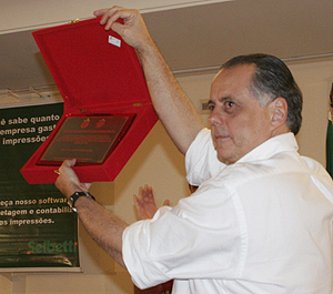 Fernando Carvalho ganhou uma placa da torcida Nação Colorada de Santa Catarina em homenagem à conquista da América