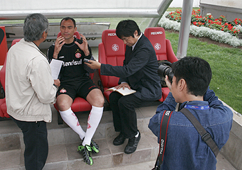 Fernandão concede entrevista à equipe de televisão japonesa: Inter no clima do Mundial