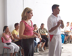 Bernadete Johnson (E) e Ademir Calovi tiveram um encontro com os pais dos atletas das categorias de base