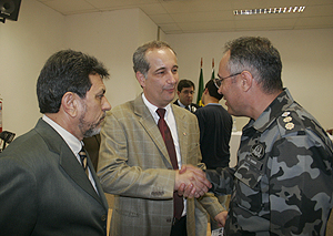 Luis Antonio Lopes (E), Giovanni Luigi (C) e o tenente-coronel da Brigada Militar, Jarbas Vanin, estiveram presentes na reunião realizada na SJS