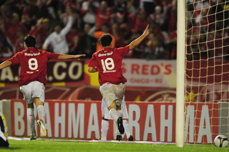 O Inter dava show, com um futebol lindo de dribles, movimentação e toques rápidos. Aos 23min, D´Alessandro (foto ao lado) fez um carnaval pela direita, aplicou vários dribles em dois marcadores e cruzou para Kléber que chutou forte e quase Bolívar alcançou na pequena área. Aos 27min, D´Alessandro deu bom passe para Marquinhos que cruzou na rede pelo lado de fora. Mais uma boa iniciativa do meia argentino que incendiou o jogo a favor do Inter. Aos 29min, Marquinhos foi lançado na área e chutou forte para boa defesa de Bruno. Aos 31min, o Inter fez uma série de passes, de pé em pé, da esquerda pra direita até Giuliano lançar Edu, na área, mas a bola correu demais e saiu pela linha de fundo. A torcida aplaudiu a linda jogada coletiva.