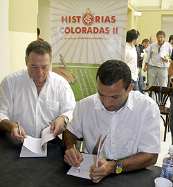 Elder Granja (E) e Wellington Monteiro marcaram presença no lançamento do Histórias Coloradas II